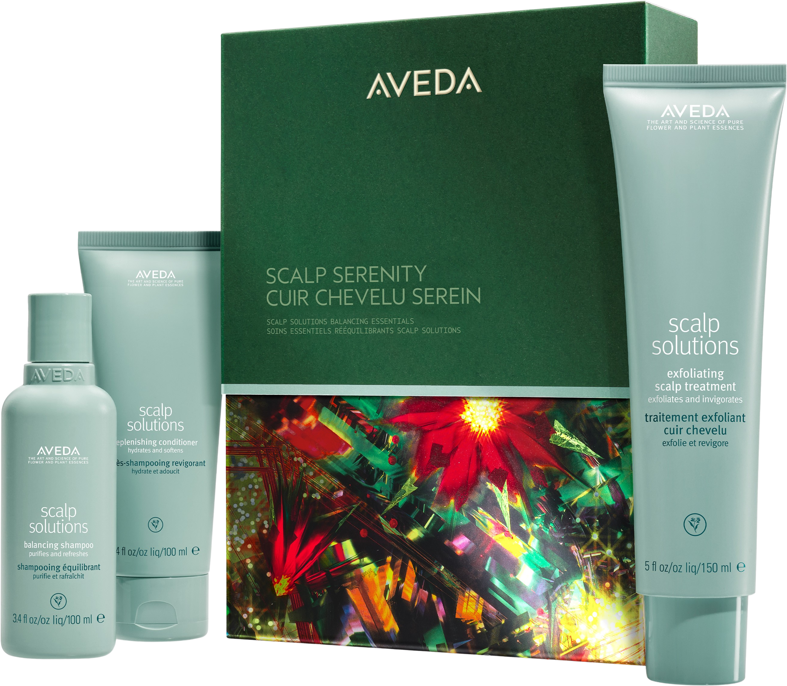 Az Aveda limitált Scalp Serenity szett egyensúlyba hozza fejbőrét és erősítő tulajdonságokkal támogatja a hajat. A gondosan összehangolt ápoló termékek gyengéden tisztítják, hidratálják és hatékonyan eltávolítják a lerakódásokat - a friss, revitalizált fejbőr érzéséért. A szett egy kiváló minőségű, újrafelhasználható ajándékdobozba van csomagolva, így tökéletes ajándék a gyökerektől a hajvégekig tartó optimális ápolásért.