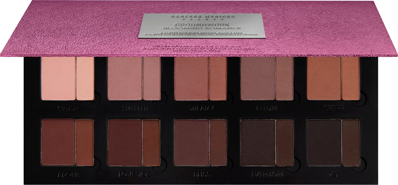 A Groundwork Palette Blooming Romance a Danessa Myricks-től egy sokoldalúan használható, talkummentes sminkpaletta, amely bársonyos, olajelnyelő púderek segítségével könnyedén definiálja a szemeket, szemöldököket, orcákat és ajkakat. A magas pigmentáltságú színek tökéletesen illeszkednek minden bőrtónushoz, és szívesen kombinálhatóak egymással, hogy megjelenésed különlegessé váljon. Legyen Ön profi vagy kezdő – alkosson, kombináljon és satírozza a színeket, hogy megtalálja egyedi megjelenését.