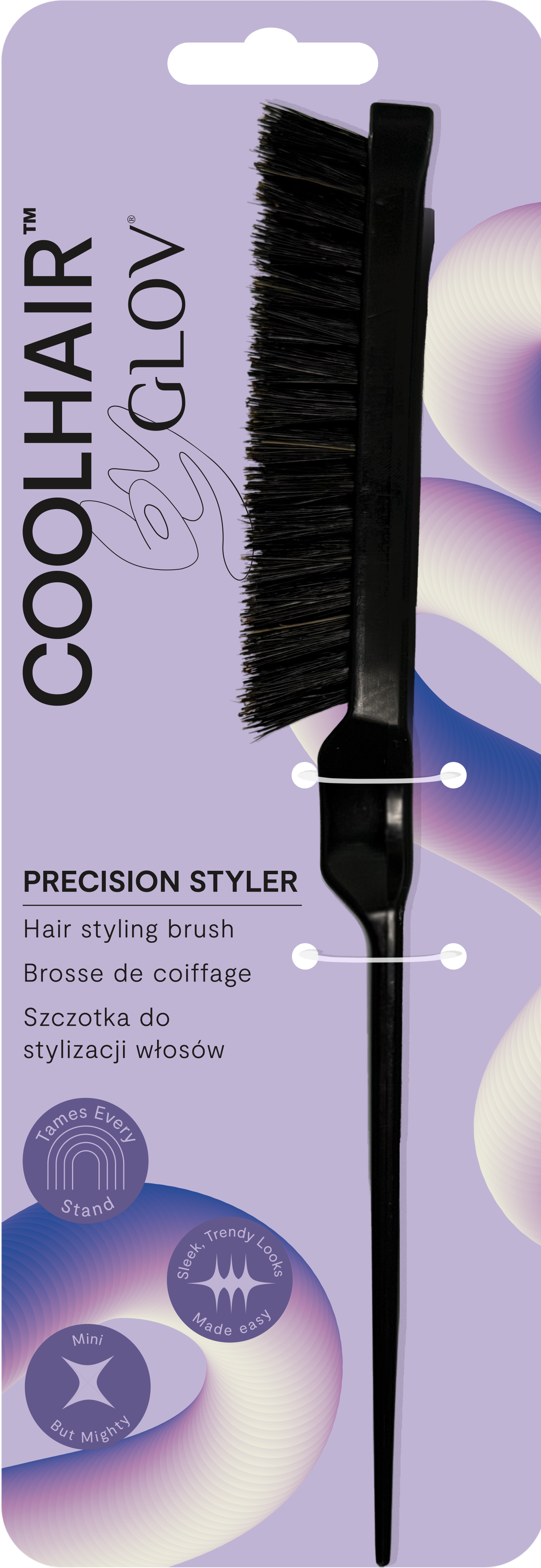 A PRECISION STYLER hajkefe a divatos, hibátlan frizurák tökéletes eszköze. Ideális a legmenőbb hajtrendekhez: legyen szó feszes kontyról (sleek bun), nedves hatásról (wet hair look), szirén hullámokról (siren waves) vagy tökéletesen meghatározott loknikról - teljes kontrollt és precizitást biztosít a formázás során. Erős, de ultrafinom tűi finoman siklanak a hajon, megszelídítik a szálló hajszálakat, meghatározzák a kontúrokat és profi finomsággal formáznak minden egyes tincset. A kefével még az apró részletek is könnyedén létrehozhatók.
