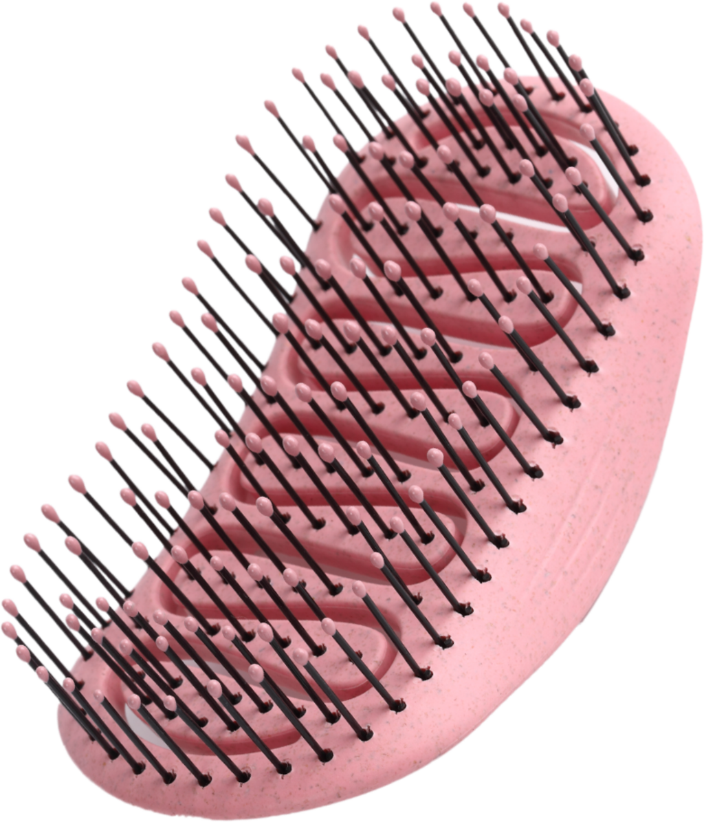 Ez a kefe fájdalommentes, gyors és hatékony hajkifésülést biztosít. A tenyérnyi méretű, búzaszalmából készült bioalapú eszköz rugalmas, különböző hosszúságú sörtékkel rendelkezik, ezáltal simán siklik a tincseken anélkül, hogy károsítaná a hajszerkezetet vagy statikus elektromosságot okozna. Ergonomikus, párnázott alakja csökkenti a nyomást a gubancok fésülésekor, így minden hajtípushoz gyengéd, legyen szó vékony, vastag, göndör vagy finom babahajról.