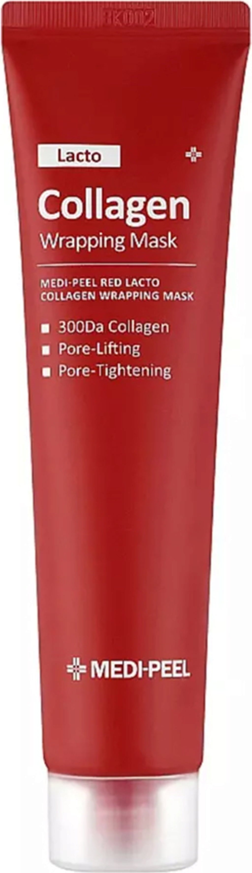 A Red Lacto Collagen Wrapping Maszk a MEDI-PEEL-től bőrápoló burkává alakul a bőrön, hatékonyan dolgozva a megnagyobbodott pórusokon, csökkentve azok méretét és mélységét, simítva a bőr felszínét. Az olajos fény és a felesleges faggyú is a múlté. Az Anti Sebum P™ tartalommal, amely egy fejlett gyógynövény komplex, gazdag kivonatokkal fenyő, szilfa és ligetszépe alapon, a maszk szabályozza a túl aktív faggyúmirigyeket és helyreállítja a bőr normál egyensúlyát. Az elit Lactobacillus-enzimek (1.000 ppm) serkentik a mikroflórát és a kollagén termelést, ami több feszességet és ragyogást eredményez. Az aminosavak erősítő hatást fejtenek ki, míg a magas és alacsony molekulasúlyú hialuronsav mélyen hidratálja. Ezen felül a maszk Tannin™ tartalomú, amely egy másik gyógynövény komplex datolyaszilva, szőlő, kávé, sáfrány, rododendron, zöld tea, pórsáfrány és krizantém alapján. Ez az egyedülálló összetétel óvja az irritációktól és hámlasztó tulajdonságokkal is bír.