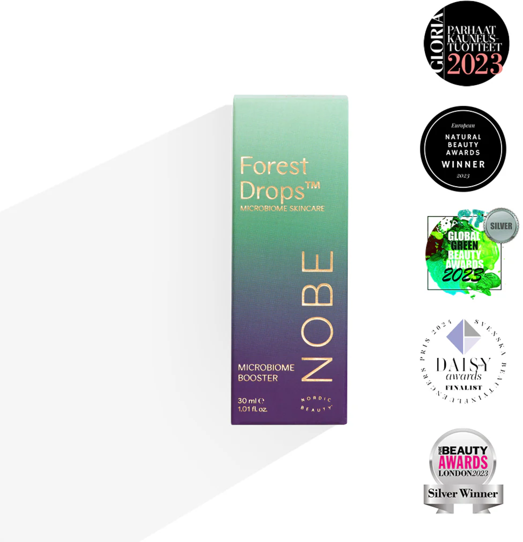 A Forest Drops® Microbiome Booster a NOBE márkától egy koncentrált komplex, amely nagy adag innovatív Re-Connecting Nature® erdei mikroba-extraktumot tartalmaz, a bőr mikrobiomjának támogatása érdekében. Számos előnyt kínál a bőrápolásban, mint például a bőr mikrobiom természeti egyensúlyának visszaállítása, a bőrvédőréteg erősítése és a bőr regenerálódásának előmozdítása. Az extraktum csökkenti az irritációkat és fokozza az anti-aging kollagén termelését.